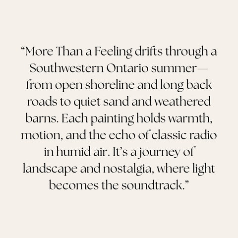 From back-road horizons to the wide, open breath of Lake Huron, each painting drifts through warmth, motion, and memory. Think long drives, sand-soft evenings, weathered barns, and light that feels like a soundtrack.