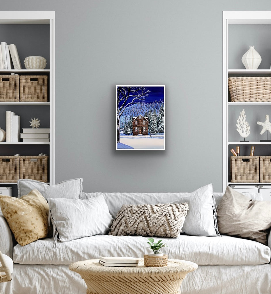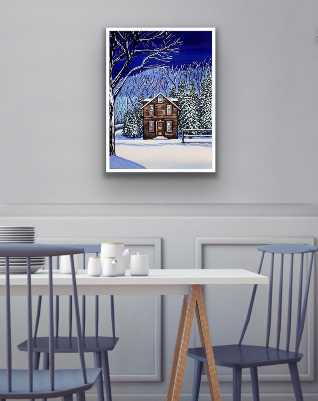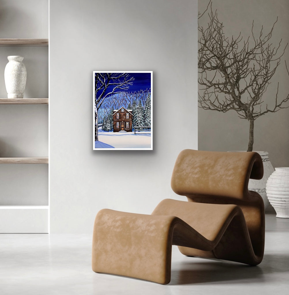 ‘Azure’ is an original painting of a cozy winter paradise in Vermont.